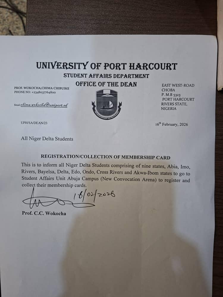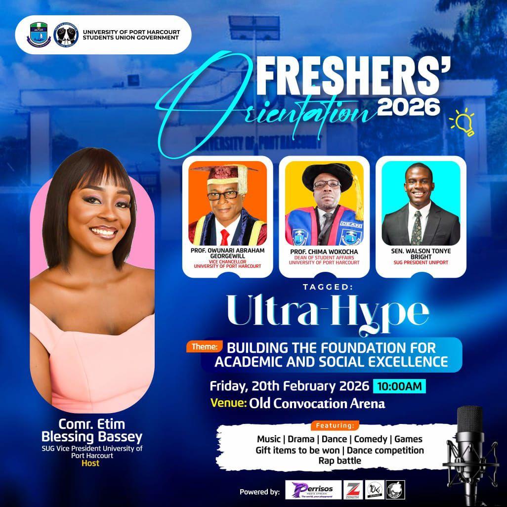 The Student Union Government (SUG) of the University of Port Harcourt invites all first-year students to the Freshers' Orientation Programme.