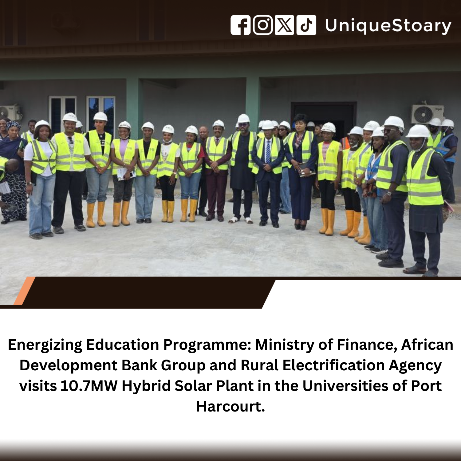 Energizing Education Programme: Ministry of Finance, African Development Bank Group and Rural Electrification Agency visits 10.7MW Hybrid Solar Plant in the Universities of Port Harcourt. The Team was impressed with the progress made so far put at about 98.1%. Training of STEM students, and capacity building for staff and students have also progressed significantly. The University is already enjoying the benefits of this program with improved energy security, reduced operation cost on expenditure on power. The Team would return in about 4 weeks for a possible final clearance of the Project. The Uniport Vice Chancellor Prof. Owunari Georgewill was on ground to receive the team and take them round the facility. _____________________________________________ We have a WhatsApp channel. Do well to follow for exclusive offers, placements and real time updates; https://whatsapp.com/channel/0029VbAYOmR05MUbjMcimM00 _____________________________________________ #UniqueStoary #Uniport #Stoary #ABetterUniport #Cikamo #Campus #CampusGist #CampusLife