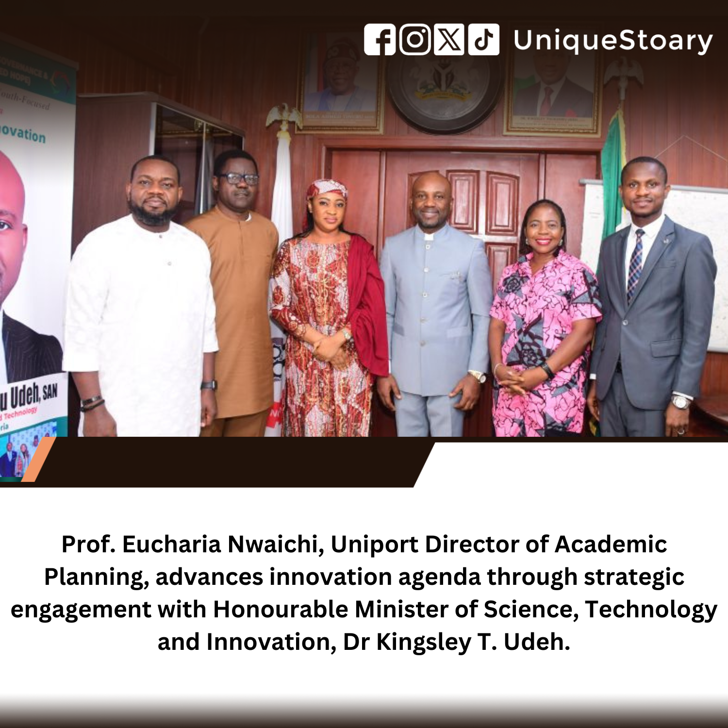 Prof. Eucharia Nwaichi, Uniport Director of Academic Planning, Advances Innovation Agenda Through Strategic Engagement with Honourable Minister of Science, Technology and Innovation, Dr Kingsley T. Udeh. Prof. Eucharia Nwaichi, Director of Academic Planning at the University of Port Harcourt, has highlighted a major step forward in strengthening Nigeria’s innovation ecosystem following a high-level engagement with the Honourable Minister of Science, Technology and Innovation, Dr Kingsley T. Udeh. The meeting, which involved a delegation from Triple Helix Nigeria, focused on fostering stronger collaboration to drive research commercialisation, enhance innovation infrastructure, and deepen partnerships between universities, industry, and government for national development. Key areas of discussion included skills development and enterprise creation as vital drivers of Nigeria’s economic competitiveness. Prof. Nwaichi also acknowledged the contributions of foundational partners, including University of Port Harcourt, NCDMB, and CypherCrescent Limited, for their continued support in advancing the Triple Helix vision. She further expressed appreciation to the Vice Chancellor, Prof. Owunari Georgewill, for his unwavering leadership and support. The engagement underscores the growing emphasis on building sustainable pathways from knowledge to real-world impact in Nigeria’s development trajectory. 📌 Join the Unique Stoary Community on Telegram let's have real time discussions on latest happenings and matters arising in Uniport. Click on this link to join https://t.me/uniquestoary _____________________________________________ We have a WhatsApp channel. Do well to follow for exclusive offers, placements and real time updates; https://whatsapp.com/channel/0029VbAYOmR05MUbjMcimM00 _____________________________________________ #UniqueStoary #Uniport #Stoary #ABetterUniport #Campus #CampusGist #CampusLife