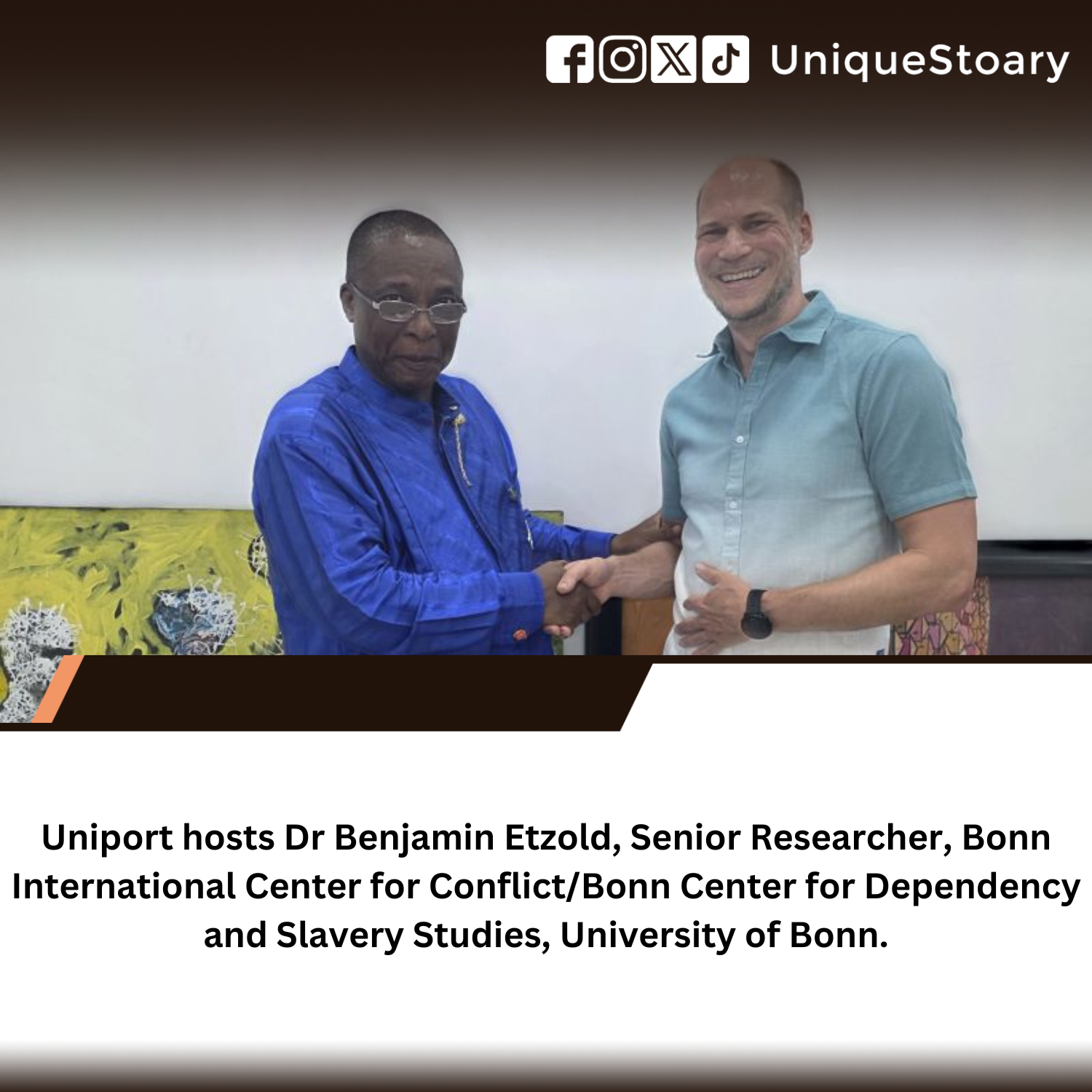 Uniport Hosts Dr Benjamin Etzold, Senior Researcher, Bonn International Center for Conflict/Bonn Center for Dependency and Slavery Studies, University of Bonn. In continuation of the University of Port Harcourt and Bonn University Germany collaboration, Dr Etzod is in the University as Guest Lecturer in the international training workshop on peace and conflict studies in the University of Port Harcourt. The Uniport Vice Chancellor, Prof. Owunari Georgewill commended the Bonn University for their commitment to this collaboaration. He also commended Professor Daisy Oyinge for driving this collaboration to this level. _____________________________________________ We have a WhatsApp channel. Do well to follow for exclusive offers, placements and real time updates; https://whatsapp.com/channel/0029VbAYOmR05MUbjMcimM00 _____________________________________________ #UniqueStoary #Uniport #Stoary #ABetterUniport #Cikamo #Campus #CampusGist #CampusLife #CampusLife