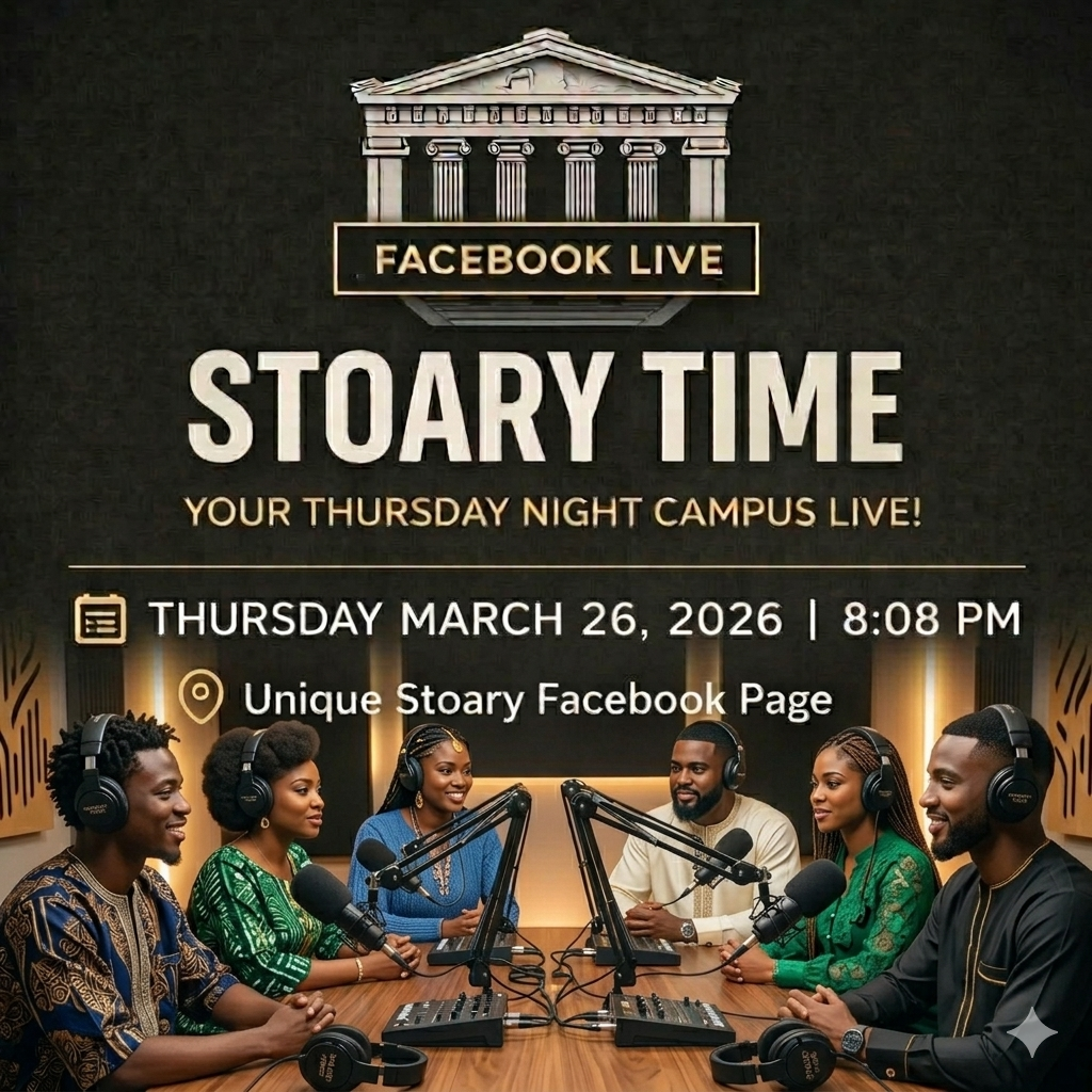 🎙️#StoaryTime SPECIAL EPISODE ALERT: Let’s Talk Campus Reality! There’s a lot happening across the University of Port Harcourt right now. From policy shifts to the library hushes, it’s time to dive into the stories that matter. Today on #StoaryTime, we are going deep into the heart of the Uniport experience. 📜 On the Table Today: 1) The Dues Debate: We’re breaking down the recent ban on Faculty and Departmental dues. What does this mean for student associations and your pocket? 2) Exam Fever: With the calendars ticking down, how is the "Unique" family preparing? Are you ready, or are you just preparing to "rugged it"? 3) The Unfiltered Gist: All the trending campus happenings you've been whispering about. 🔔💬Want to be part of the discussion LIVE? We're calling on Uniport students who would love to share their thoughts and experiences. Send us a DM or comment below with: 1. Your Full Name 2. Department 3. Phone Number (Call) Be part of the voices shaping the conversation. 🗓 Today, Thursday March 19, 2026 🕗 8:08 PM 📍 Unique Stoary Facebook Page Come ready to talk, listen, learn, and share your Stoary. Because your voice matters. _____________________________________________ We have a WhatsApp channel. Do well to follow for exclusive offers, placements and real time updates; https://whatsapp.com/channel/0029VbAYOmR05MUbjMcimM00 _____________________________________________ #UniqueStoary #Uniport #Stoary #ABetterUniport #StoaryTime #Cikamo #Campus #CampusGist #CampusLife #CampusUpdate #ProudlyUniport